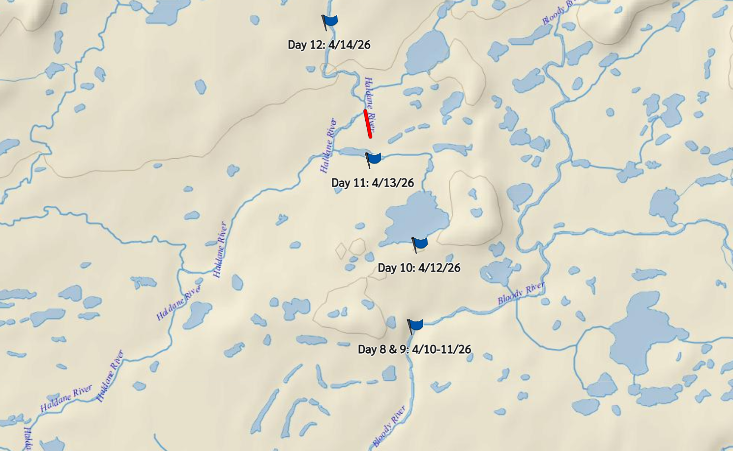 Will has completed his crossing to the Haldane River, into barren lands north of the tree line, making his way north and getting some aerial entertainment in the process.