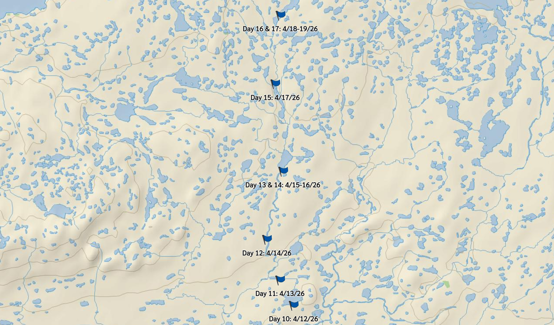 Will’s location at the end of Day 17, unchanged from yesterday because the storm forced a day off. Visit Will’s interactive map for complete control of magnification and orientation.