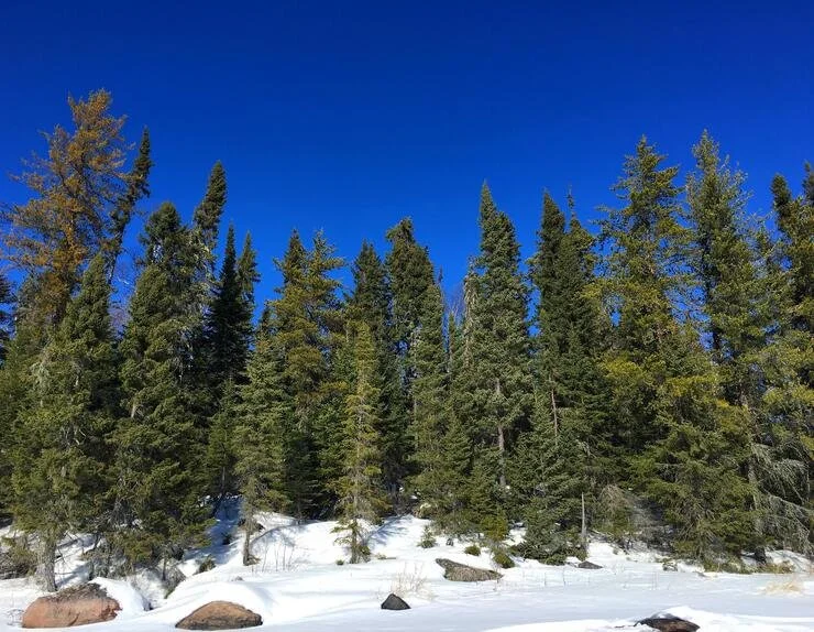 Will mentions that black spruce trees, as in this photo, line the Bloody River he is traveling along. (See photo source for more information.)